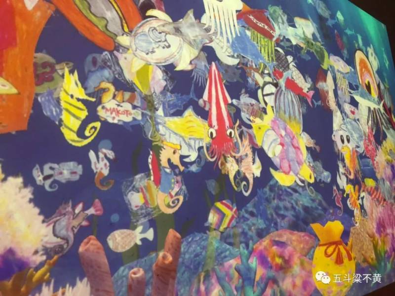 遊客用蠟筆于紙上畫海洋動物,工作人員掃描後可以在屏幕上出現
