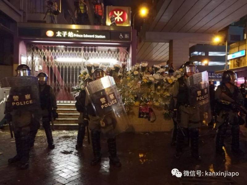 9月2日夜晚,有大批香港市民到太子站獻花,防爆警察到場驅趕,又沖入人群中拘捕,噴辣椒水,施放催淚彈。現場不斷發生沖突。(李曉穎攝)
