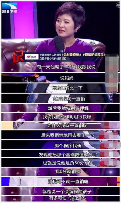 就連前央視名嘴張泉靈,也在節目中自爆兒子學了編程1個月,就能改遊戲規則了,直接碾壓自己。