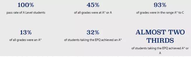 東陵國際學校A水准取得的成績也同樣優異!45%的學生所有科目考取“A”及以上等級。