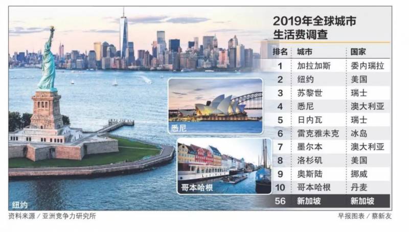 新加坡國立大學李光耀公共政策學院亞洲競爭力研究所進行的年度調查顯示,新加坡依然是外派人員生活費最高的亞洲城市,在全球105個城市中排名第五,比去年下降一位;但對于普通老百姓來說,新加坡的生活費排在第56位,比去年下降兩位,也低于2017年的52位和2016年的49位。