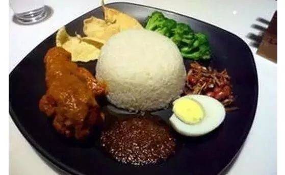 馬來椰漿飯Nasi Lemak:馬來語中nasi是飯的意思、lemak是椰漿的意思,合起來就是馬來椰漿飯,傳統吃法是用芭蕉葉包起來成三角狀,並附有魚幹、花生、黃瓜、煎蛋等小菜,加上一些辣醬,馬來人把它當作早餐,一天活力的來源。推薦地點:君華麗嘉大酒店Claymore Cafe at Meritus Negara Hotel。