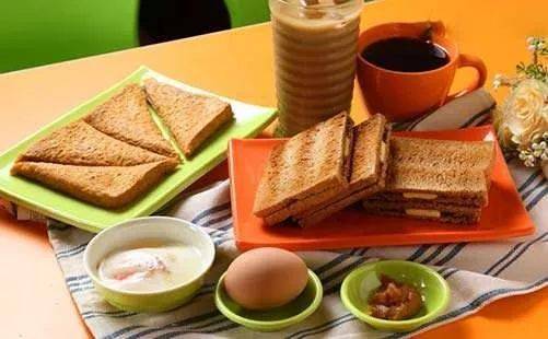 新加坡式早餐吐司通常塗上牛油和咖椰(椰奶和雞蛋制作而成的果醬),口味較甜,可以配上一杯咖啡哦,點咖啡時要告知是否加糖或加奶(通常是加煉乳),桌上不提供糖罐或奶精。