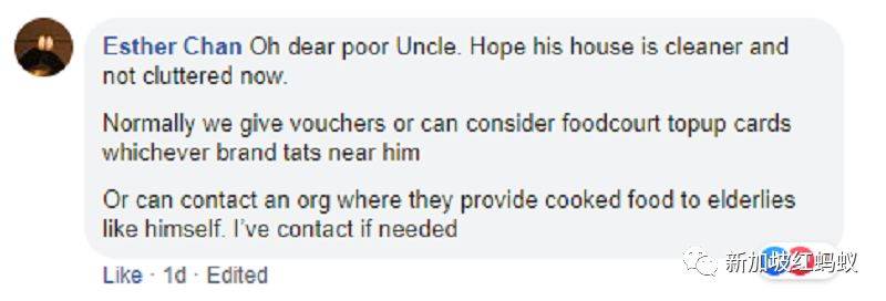 她帖文寫道:“想像一下,看到80歲阿伯房子裏堆滿了食物和無數瓶調味品是多麽的恐怖。”