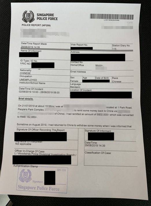 2019年7月21日,下午3點18分,我在牛車水的一家彙款公司,彙錢回中國銀行賬戶。總計3萬2000新幣,16萬2880人民幣。