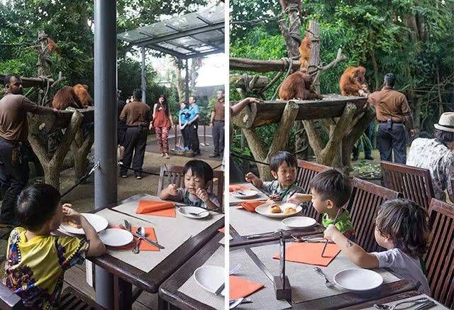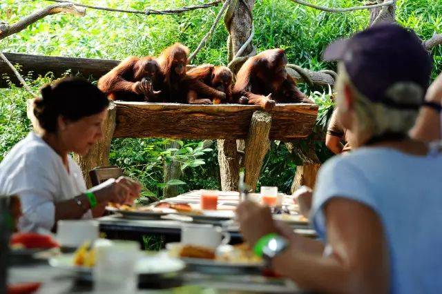 除了這些,動物園還有特別安排和紅毛大猩猩一起吃早餐的活動。