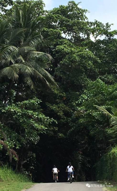 登島之後,租一輛腳踏車必不可少,十多公裏鋪設好了的環島觀光道起起伏伏,伴著花香鳥鳴騎行在密林山澗之間,迎著微風而上,感覺自己已經融進了這片小島。(自行車價格8到25新幣不等,騎行時間不限)