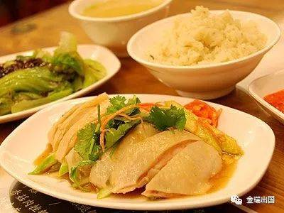 海南雞飯是新加坡的一道准“國菜”。雞肉鮮美嫩滑、米飯芳香撲鼻、配以雞湯、切片的黃瓜和辣椒醬一起食用,妙不可言。極其簡單,卻美味無比,堪稱一絕。海南雞飯的制作方法特別講究,將全雞用水煮至嫩熟,切塊,裝盤,灑上芝麻油與醬油;飯也是用雞湯和雞油一起蒸煮的,所以特別香滑可口;再蘸點黑醬油、蒜末或一種特制的酸辣辣椒醬吃,口感棒極。海南雞飯的雞肉絕對不能全熟。要骨頭周圍的肉略微桃色,雞的骨髓還是帶著血的,才算合格。