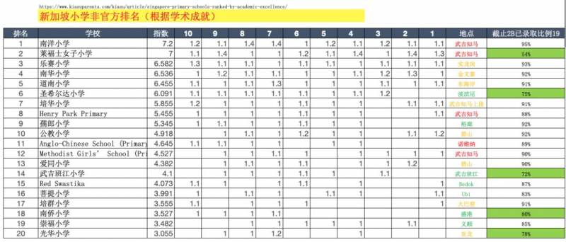 新加坡小學沒有官方的排名,用政府的話說,每所小學都是好學校。