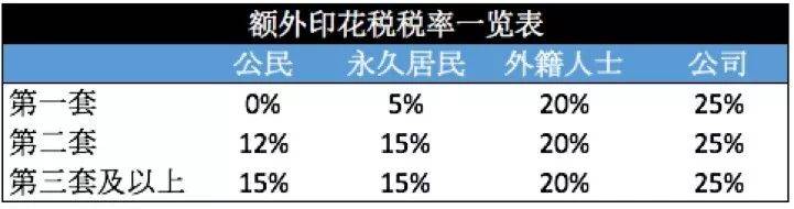 3)額外印花稅:額外印花稅的稅率可以參照下表