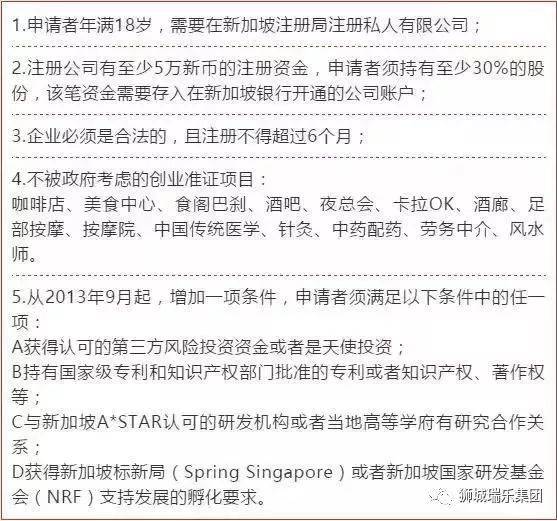 創業准證,又稱作商業入境證,是由新加坡人力部(MOM)及新加坡標新局(Spring Singapore)聯合審核的一種面向外國企業家的工作准證。如果准備在新加坡成立新的公司,就有資格申請創業准證,從而進一步取得新加坡永 久居留權(PR),達到創業移民的目的。