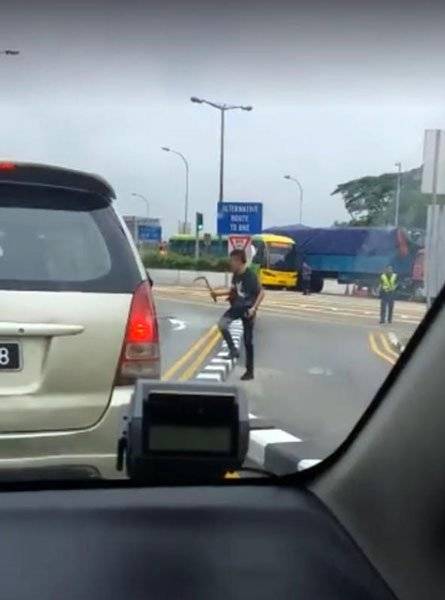 他見到馬路上塞車,拿著鐮刀走向其中一輛紅色的馬自達轎車,威脅40歲的女車主下車。他搶走車子後,通過武吉知馬快速公路開往兀蘭關卡。