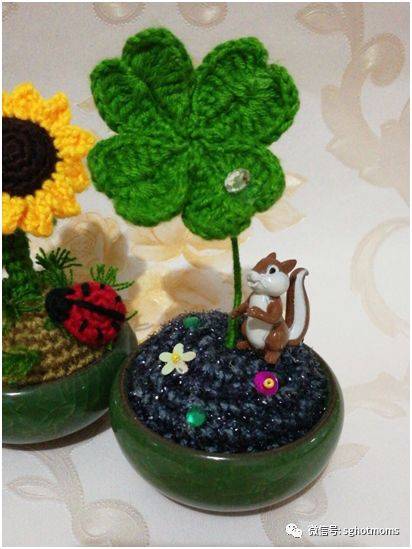 手工達人可以嘗試一下手工勾的毛線“盆栽”。