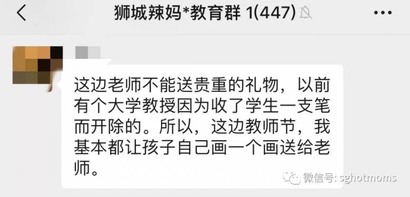 另一種家長表示送禮助長了不良風氣,還給老師的集體抹黑,教好學生就是老師的本職工作,怎能用附加的價值來衡量。
