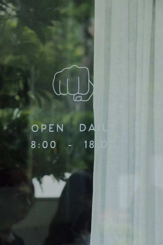 從街邊看這家店實在沒有網紅店的樣子。水泥灰建築甚至沒招牌,只有仔細看,才能在落地窗上看到那個標志性的小拳頭。