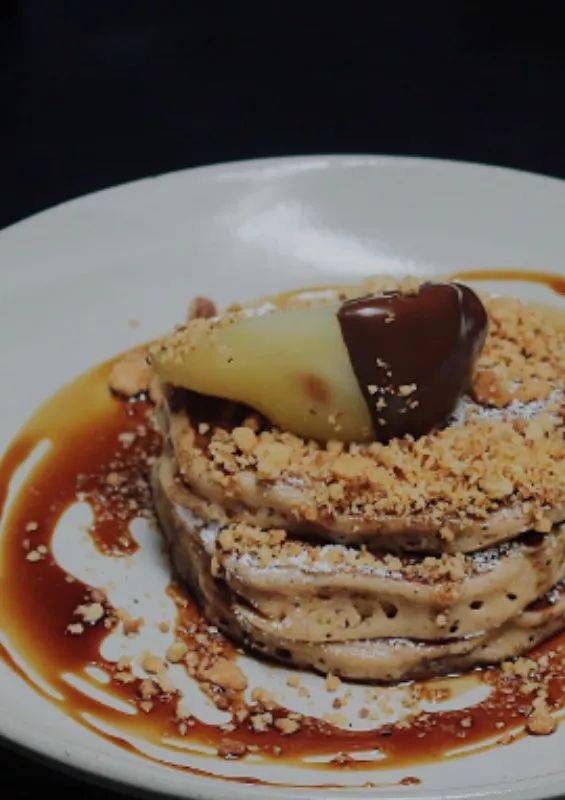 搭配上焦糖和曲奇碎整體的甜度調節的剛剛好,頂上還有半個裹了巧克力醬的凍梨,甜食和碳水化合物的奇妙反應,真的是一口下去就覺得幸福。