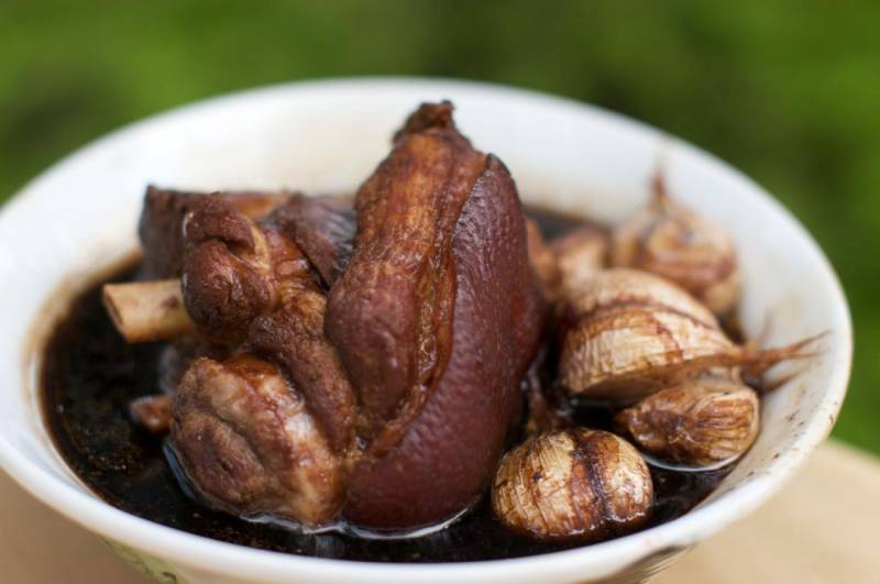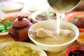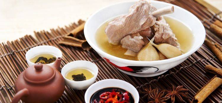 這個名字,本來指的是賣肉骨湯的地方,簡稱”肉骨地“,由于閩南話地和茶是相似的發音(茶讀作Teh), 就變成了肉骨茶。肉骨,就是排骨,用八角桂皮丁香大蒜和排骨一起熬幾個小時,配上白米飯,油條,面線,豆蔔沾醬油來吃。藥材煮出來的湯,在潮濕的熱帶,簡直就是祛濕良方。據說常吃肉骨茶的妹子皮膚光滑不長痘!