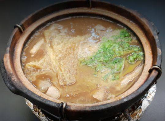 湯底以蒜頭粒、胡椒及醬油等配料,