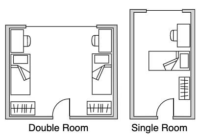 單人間價格在每月$375到$450之間,雙人間價格在$255到$330之間。一般上來說,雙人間比單人間面積x2要大一點。