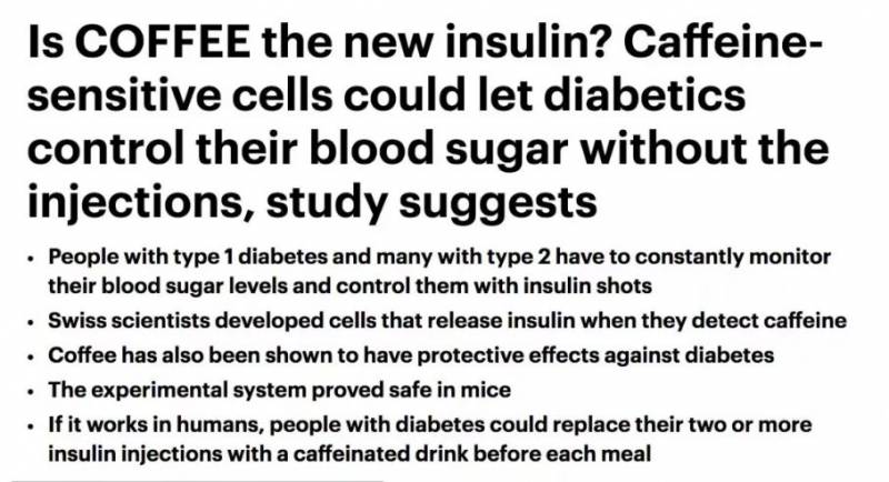 但可以造福于無數糖尿病患者的好消息是:胰島素的功效在未來可能被咖啡所替代!