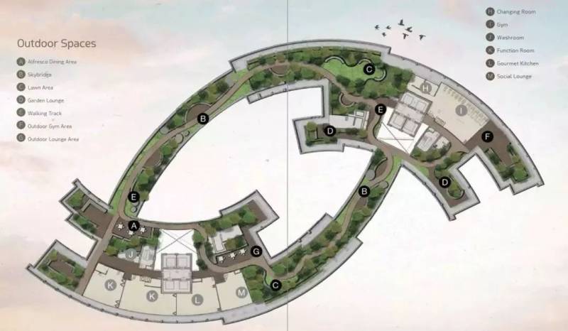 社區花園的概念將兩座公寓大樓劃分成9個小社區,業主可以租用這些園圃來自己種植花卉、水果及蔬菜,在鬧市中享受一番田園之樂。小區更有100只錦鯉,讓居住在此的業主“如魚得水”。