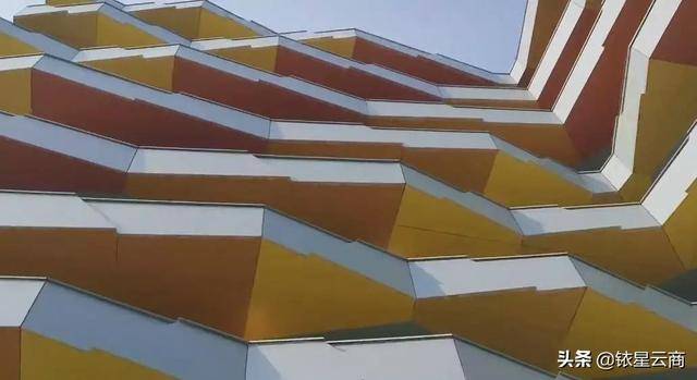 靠近福南就可以看到一個壓花鋁板組成的多媒體巨大屏幕,13米高、9米寬,十分震撼。它擁有1271個電動光葉片,可以隨意編程。