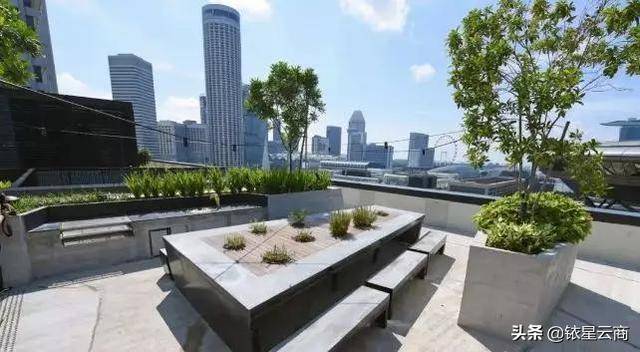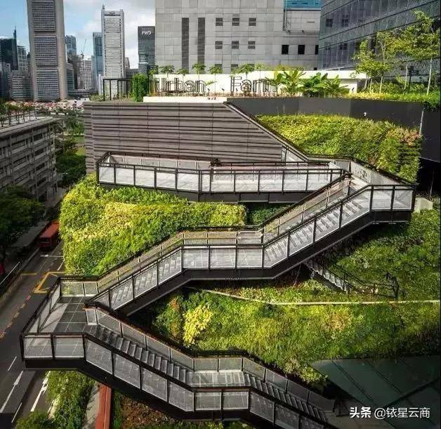 沿著室外樓梯繼續向上幾層,就可以到達位于10樓的屋頂花園。要鳥瞰新加坡,這裏可以說是最佳選擇了。俯可瞰城市農場,仰可觀金沙酒店、新加坡河,俯仰動靜之間,城市人文與自然美景盡收眼底。同時,屋頂花園內還設有躺椅,方便顧客暫時休憩。