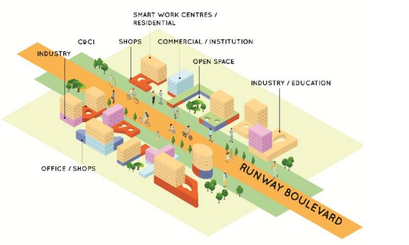 同時,可以結合前機場建築和跑道部分,設計充滿活力的新公共空間!