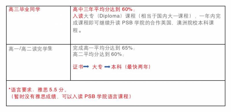 無論你有沒有雅思成績,還是有沒有參加高考,都可以報讀PSB學院。按部就班往上升學,拿到國際頂級名校文憑。