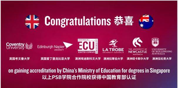 目前,新加坡PSB學院合作的6所世界頂級院校,均已獲得中國教育部認證!是目前擁有最多數量合作院校獲得認證的新加坡院校。