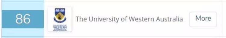 澳洲大學的金字招牌之一——西澳大學,目前在最新的QS世界大學排行榜上排名第86位,與它排位比較近的中國大學是中國科技大學,今年排在第89位。