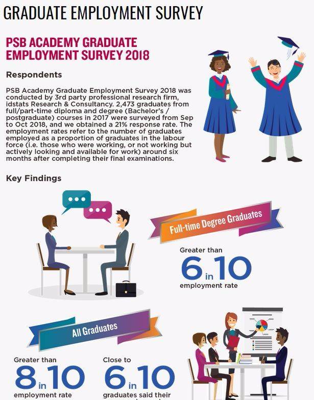 通過對2018年畢業生的就業調查統計出,該院校畢業生的就業率竟然高達89%!不僅如此,畢業生們找到合適工作的速度也很快,PSB學院每10位本地畢業生中,就有8位可以在半年的時間內成功就業。