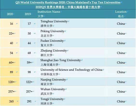 根據最新的QS世界排名,武漢大學第257位;同濟大學第265位;北京師範大學第277位;中山大學、西安交大、南開大學則排在300名左右。