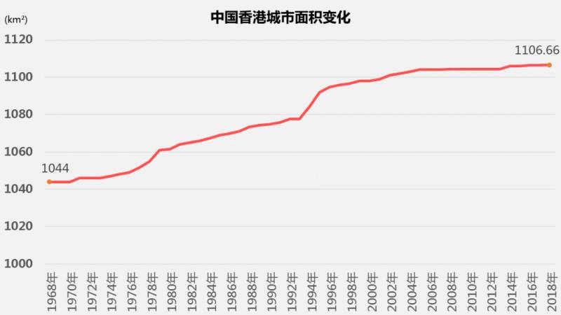 同爲港口城市的香港也在填海造陸,但進程緩慢得多,從1997年至2018年新增土地10.75km²,不到新加坡同期成果的1/7,而且自21世紀以來增速越來越慢。