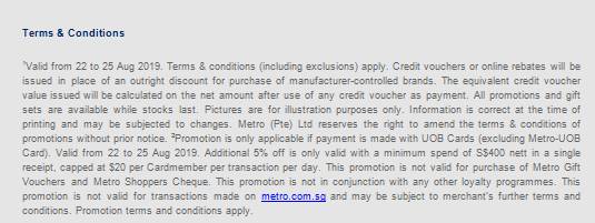 The additional 5% off is only valid with a minimum spend of S$400 nett in a single receipt, capped at $20 per card member transaction per day. (Please refer to the T&C below)