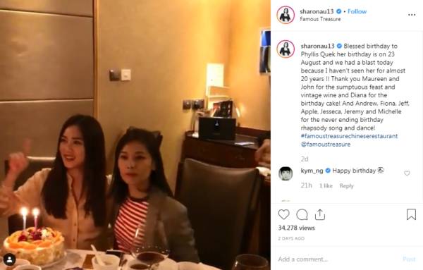 (新加坡20日訊)前新加坡藝人郭妃麗日前迎來46歲生日,也是8月壽星的前藝人歐菁仙以 “稀客”現身祝壽,郭妃麗之後在IG分享視頻,感言“這是很難忘的生日”。