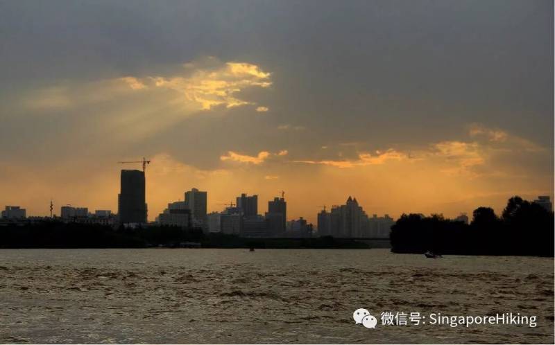 就著夕陽,我們開啓今天的生日徒步之旅。