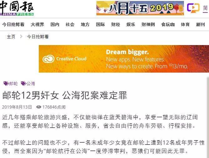 “根據國際海洋上管轄權的劃定,郵輪只要離開了海岸線12海裏到達公海海域,那麽郵輪上發生的任何案件就不屬于受害人所在國管轄,也不屬于郵輪最靠近的那個國家管轄…. ”