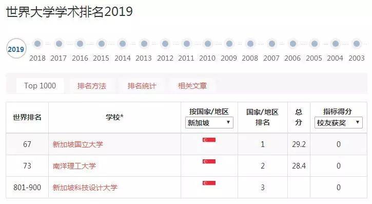 而新加坡,此次共有三所大學上榜,新加坡國立大學排名世界第67,南洋理工大學排名世界第73,新加坡科技設計大學排名世界第801-900。