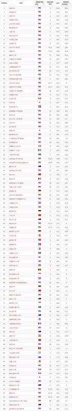 在今年的排名中,哈佛大學、史丹福大學、劍橋大學位列前三名,哈佛大學連續第17年蟬聯全球第一。歐洲大陸的大學中排名最高的是瑞士蘇黎世聯邦理工學院,排在全球第19名。亞太地區的大學中,日本的東京大學排名最高,位列第25名。