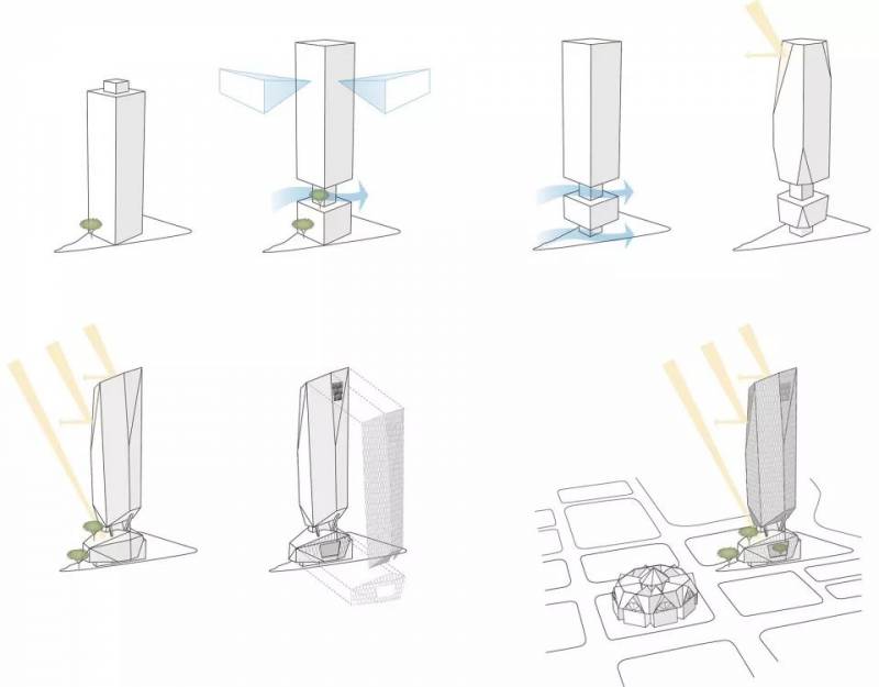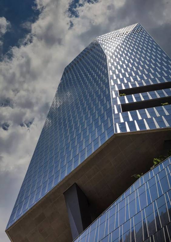 設計中核心筒的偏移再次擴大裙樓視野,同時避免立柱影響公共區域。從任意角度看,大廈多面體的外形以不同的方式反射日光和天空,外形與高度如同寶石般,立于城市天際線。
