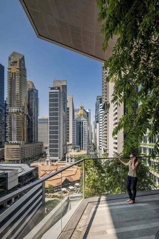2014年通過的新加坡景觀置換政策要求在新建築中建設公共可利用綠地,並且綠地面積須與因開發而損失的綠化面積相等。KPF羅敏申大廈的設計方案基于該政策,同時兼顧市場街和羅賓街交彙形成的狹窄V型場地。