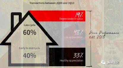 再來看另外一組數據,這是JLL的一份關于新加坡2009 到 2018年的交易數據的報告。其中,40%的買家是在周期的前中期入場,60%的買家在周期的後期入場。前期入場的買家絕大多數都獲得了健康的增值回報,而後期入場的買家中,48%獲得低增值回報,19%的人群的資産負增長。