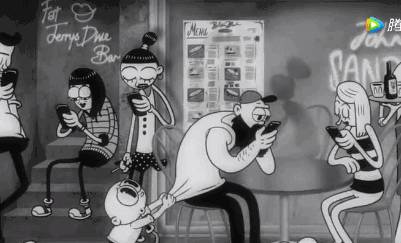2014年火爆網絡的動畫小短片《低頭人生》,就以極度誇張的手法描繪了新時代智能手機一族的生活狀態。