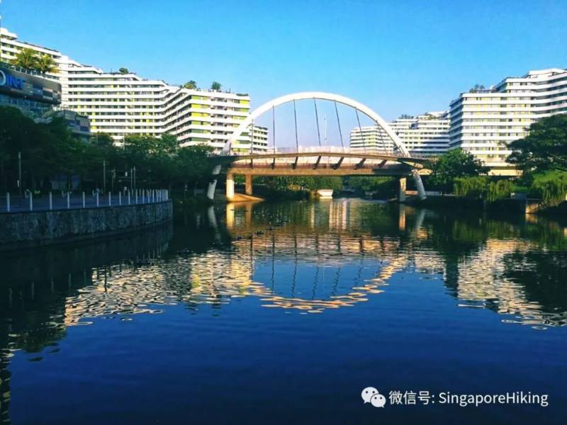 波光鱗鱗的水面,叽叽喳喳的鳥語,清風拂面的舒爽,趁著太陽微露的笑容,我們一行人又出發了。時不時從水裏遊出一只大蜥蜴,喜歡遊泳的烏龜給徒步中的徒友帶來了些許驚訝和快樂,整潔的步道和路邊的小樹林讓徒步的人們心情格外的明朗,這就是白天的榜鵝水道。到了晚上,步道上多了一些踩腳踏車的運動愛好者,步行的人們很自覺地走在規劃好的線內,大家各自進行著不同的運動方式,友好又默契。這時的路邊偶爾會蹲著幾只毛發幹淨亮閃的小黃狗,他們會輕吼兩聲提醒人們它們的存在,不用害怕,它們好像有人餵養,不會找你要吃的或者看你不順眼,在這裏生活了五年了,人們和這些動物們和諧相處,各自安好,這也是新加坡最大的特色和風景線。喜歡徒步在榜鵝水道,和大家相約,讓我們再一次用笑聲和輕盈的步伐占領水道的每一個角角落落吧!