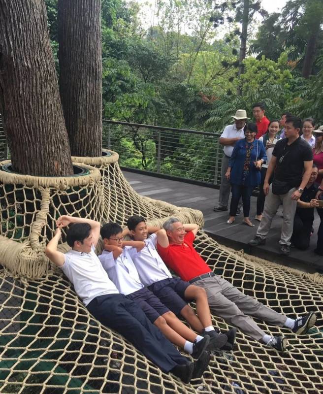路上還有可以休息的網床哦,新加坡網紅李顯龍總理似乎比旁邊的學生們還喜歡這裏~