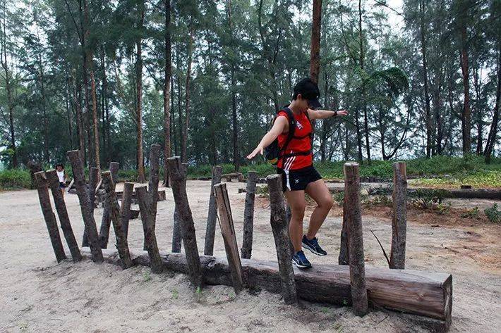 連新加坡每個公園標配的遊樂設施,到這裏都是就地取材的風格。