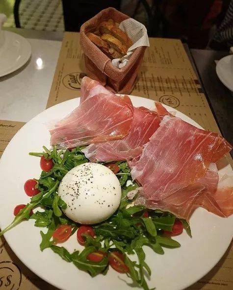 火腿沙拉、意式披薩、意大利面、意式通心粉……這家意式餐廳可能是整條街上最上鏡的餐廳了。每道菜都非常美貌,並且非常有特色。比如上圖的“章魚排”,就是將小章魚肉打碎後重新塑性的,既好看又Q彈多汁。