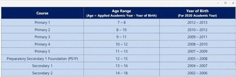 學校招生從小學1-5年級(6年級不招生),中學預備班到中三年級(中四不招生)的學生。