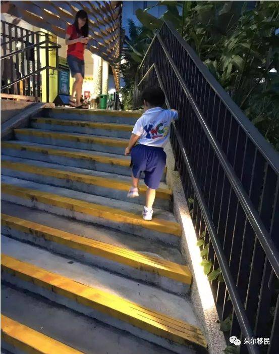 新加坡的樓梯扶手,長得都很奇怪,層層疊疊的,幹嘛呢那麽醜!那是給小朋友們設計的,不同年齡可以選擇不同高度的扶手。